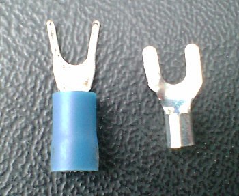 これ、そのとき実際に使った U 字端子。端子を突っ込んだ瞬間に火花が散ってすげぇ恐いんだけど、とりあえず配線の理解に間違いがないのは確認できた。ただ、こんなんじゃ走ってる最中に振動で端子がポロッと落ちてしまうのは目に見えてる。
